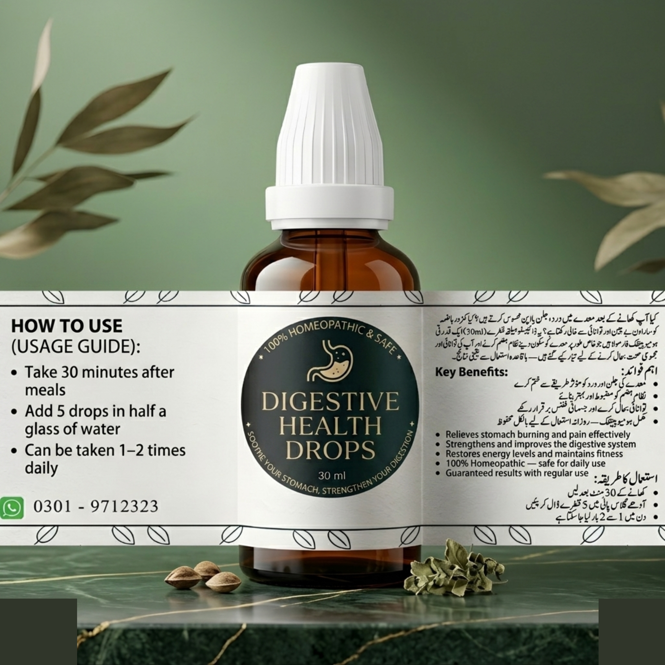 Do you suffer from stomach pain, burning, or heaviness after meals? Is poor digestion making you feel uncomfortable and low on energy throughout the day? These Digestive Health Drops (30ml) are a natural homeopathic formula specially designed to soothe your stomach, strengthen your digestive system, and restore your energy and overall fitness — guaranteed results with safe and gentle care.